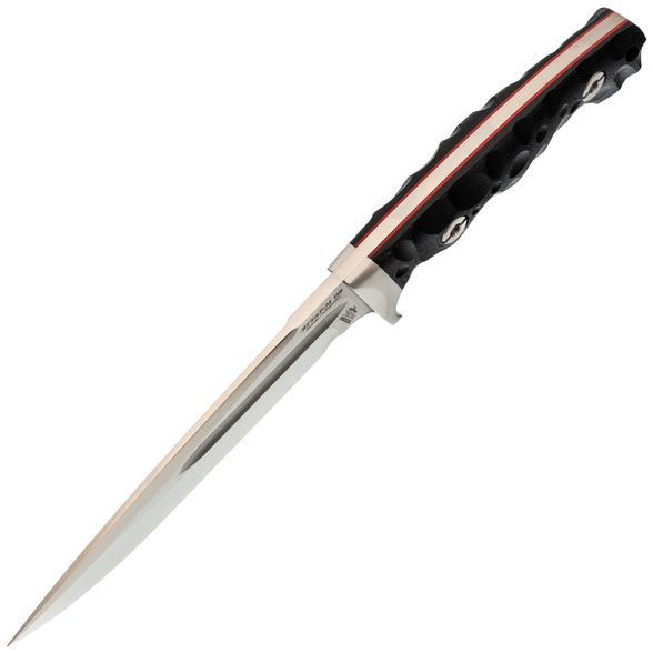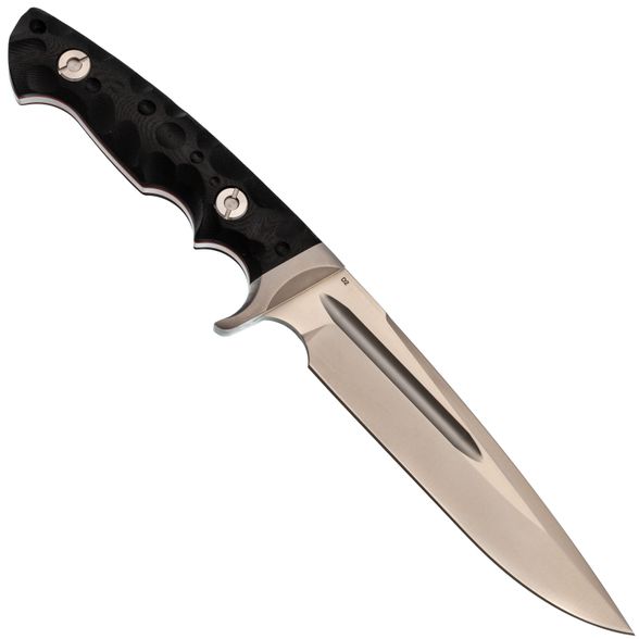 Длинный клинок с профилем Spear-Point уверенно работает на прокол. Толстый обух и спуски от середины дают хороший запас прочности и позволяют спокойно выполнять силовые задачи. Геометрия сбалансированная: нож не валкий и хорошо контролируется даже при точной работе.