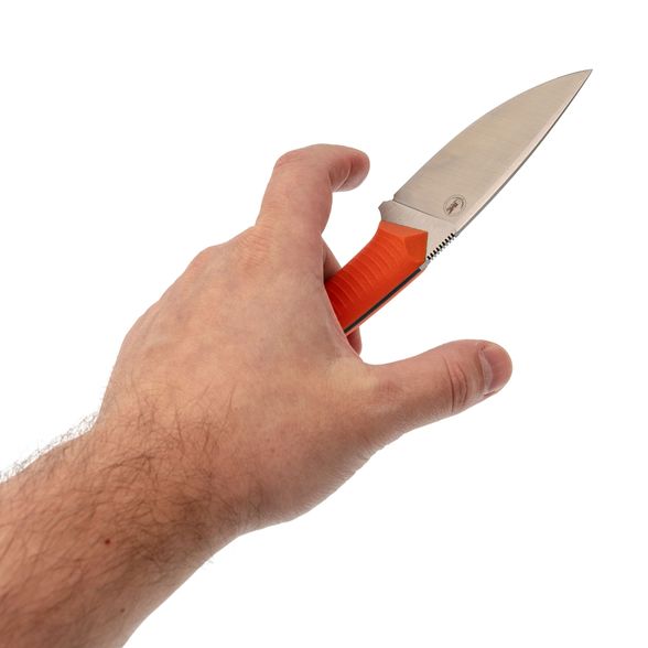 Drop-Point с прямыми спусками даёт ровный, контролируемый рез. Широкое лезвие позволяет и готовить, и строгать дерево, а фальшлезвие улучшает проникновение в материал.