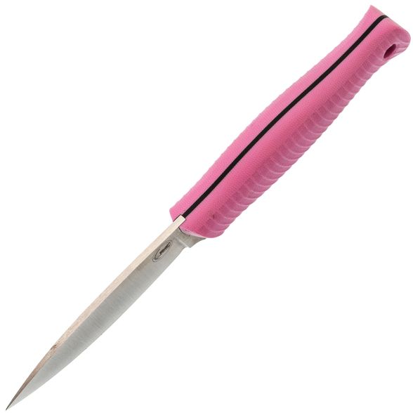 Рукоять нейтральной формы удобно ложится в любую ладонь. Цельнометаллический монтаж Full-Tang добавляет прочности и надёжности конструкции. На накладках выполнена аккуратная фрезеровка - благодаря ей инструмент не выскальзывает даже при влажных руках. Есть отверстие под темляк, что делает ношение ещё удобнее.