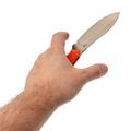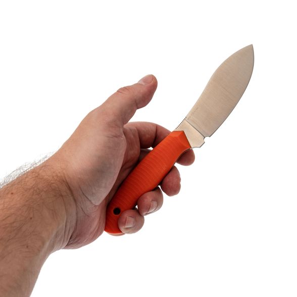 Эргономичная форма с лёгким изгибом повторяет естественное положение ладони, а небольшой упор надёжно защищает пальцы при работе. Поверхность накладок имеет фрезеровку, добавляющую цепкости. Яркий оранжевый цвет не даст потерять инструмент в траве или на берегу, а темлячное отверстие позволяет закрепить шнур для дополнительного удобства.