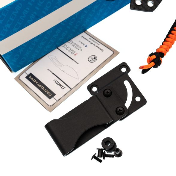 Ножны из Kydex плотно фиксируют клинок и полностью защищают его от влаги и грязи. В комплект входит пластиковая клипса, которую можно установить горизонтально или вертикально - выбирайте, как удобнее носить инструмент на поясе.