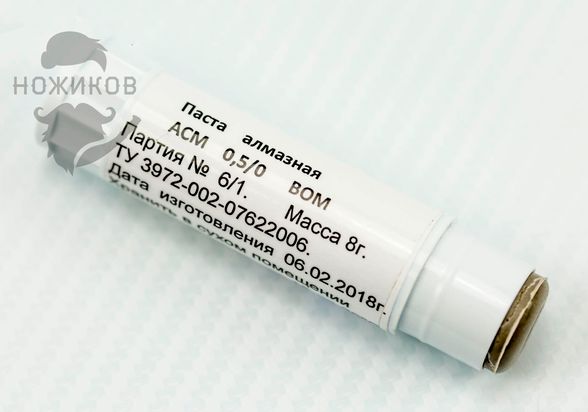 Алмазная паста отлично подойдет для правки на коже, может использоваться в качестве притира (наносится на плоскую поверхность) или для удаления царапин на клинке.
