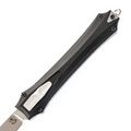 Рукоять Бретёр-02 впечатляет своим технологичным видом. Фрезеровки на рукояти обеспечивают отличное сцепление, предотвращая скольжение руки. Алюминиевая рукоять — это прочный и в то же время легкий материал, который не подвержен коррозии. Он обеспечивает комфорт и уверенный хват. Нож удобно лежит в руке, а переставляемая клипса глубокой посадки и стеклобой делают его ношение еще более удобным и безопасным.