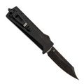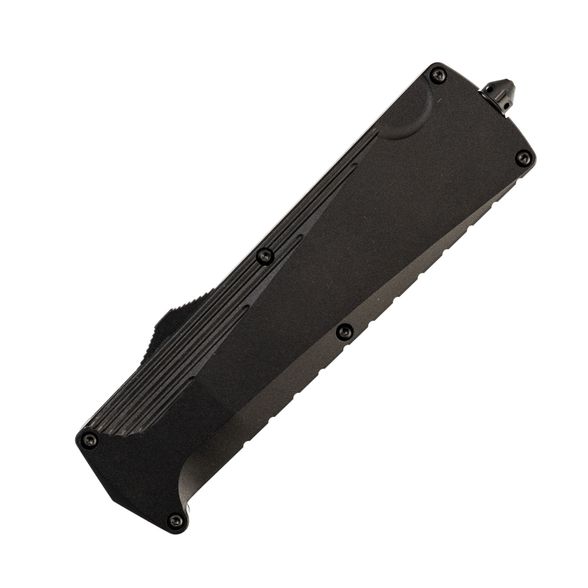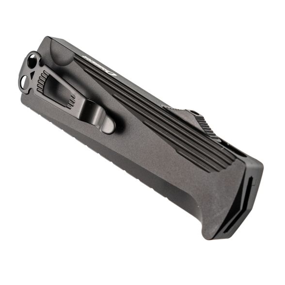 Складной нож Daggerr Koschei Bowie AIl Black (Кощей) - это первый серийный нож российского производства с фронтальным выбросом клинка. Инструмент отличается нетривиальным дизайном и механикой, а также надежностью и безопасностью в эксплуатации. Нож Даггер Кощей укомплектован клинком из антикоррозийной стали D2 длиной 83 мм. Рукоять выполнена из анодированного алюминия с насечками для лучшего хвата. На одном ее торце расположена кнопка, отвечающая за раскрытие и складывание клинка, на другом находится небольшой, но удобный подпальцевый упор. Фронтальный нож Кощей укомплектован стальной съемной клипсой оригинального дизайна, темлячным отверстием, а также шариковым стеклобоем, расположенным на тыльной части рукояти.