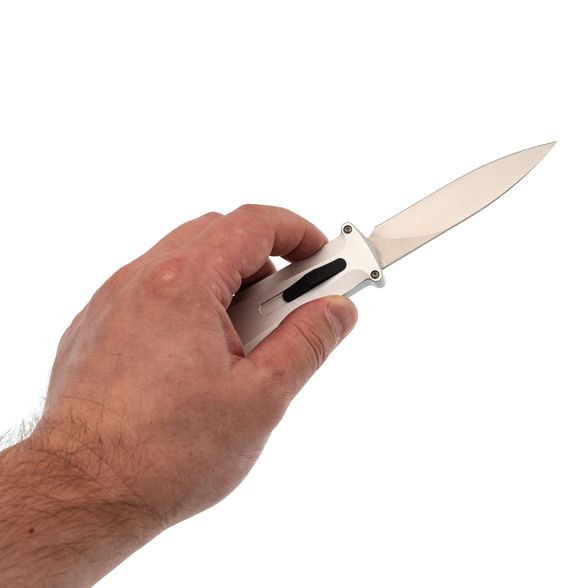Классическая форма spear-point и прямые спуски делают нож универсальным помощником для множества задач: от аккуратного реза до быстрой работы с упаковкой. Мгновенный выброс клинка осуществляется с помощью слайдера, расположенного в удобном месте, что обеспечивает оперативный доступ и безопасность эксплуатации.