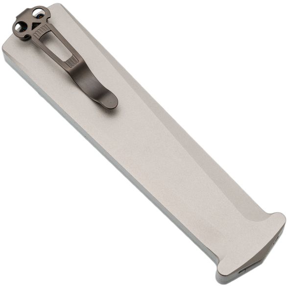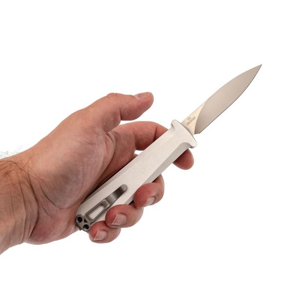 Белая рукоять с анодированием подчёркивает индивидуальность, а её тонкость обеспечивает максимально скрытное ношение. Эргономичная форма гарантирует, что нож не выскользнет даже во влажной руке. Специальная поверхность не собирает грязь и легко очищается. Клипса разработана для быстрой фиксации и мгновенного извлечения ножа из любого положения.