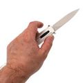 Белая рукоять приятно выделяется на фоне стандартных решений, подчеркивая стиль владельца. Анатомическая форма способствует естественному положению кисти, а тонкая конструкция буквально сливается с карманом одежды. Матовое покрытие защищает от царапин и загрязнений, легко очищается даже после активного дня. Удобная клипса позволяет надёжно закрепить нож, сохраняя быстрый доступ в любой ситуации.