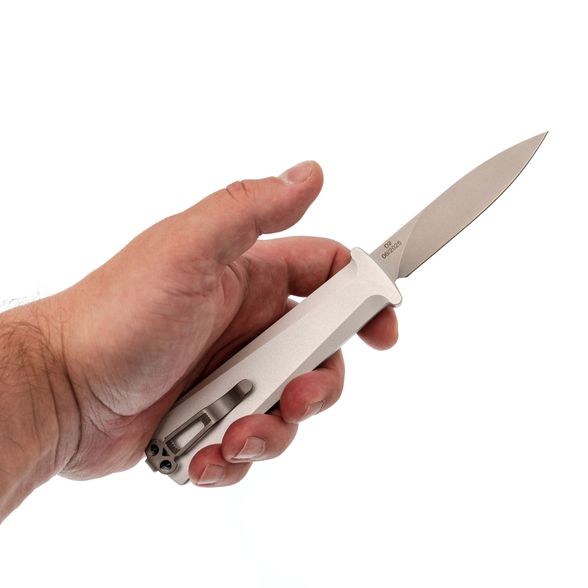 Spear-point - одна из самых универсальных форм клинка, подходящая для точных разрезов и уверенного прокола. Прямые спуски от обуха делают рез более контролируемым, а оптимальная толщина клинка позволяет использовать нож как для мелкой работы, так и для более грубых задач. Автоматический механизм работает чётко и быстро, делая доступ к лезвию максимально удобным даже в перчатках.