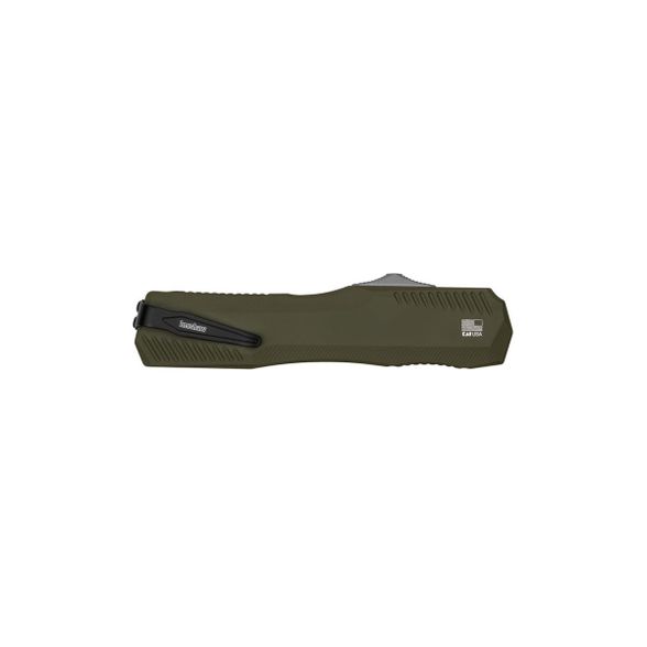 Kershaw Livewire – является ярким современным представителем автоматических складных ножей с фронтальным выбросом клинка, изготовленных в США. Его клинок изготовлен из премиальной порошковой стали Magnacut стали – материала, который завоевал популярность благодаря своей исключительной прочности, устойчивости к образованию ржавчины и способности сохранять остроту в течение длительного времени. В этом варианте ножа клинок имеет профиль Tanto, придающий ему брутальный и тактический вид, а также способствующий эффективному выполнению резательных задач. Прямые спуски от обуха способствуют созданию ровного и чистого реза, что делает его незаменимым инструментом в экстремальных условиях. Рукоять изготовлена из алюминия – легкого, но крайне прочного металла, который обеспечивает высокую стабильность и долговечность ножа, несмотря на его малый вес. Благодаря специально разработанной эргономичной форме, рукоять удобно ложится в руку, что позволяет работать с ножом длительное время без усталости. Дополнительным преимуществом является его двусторонняя конструкция, делающая использование удобным как для правшей, так и для левшей.