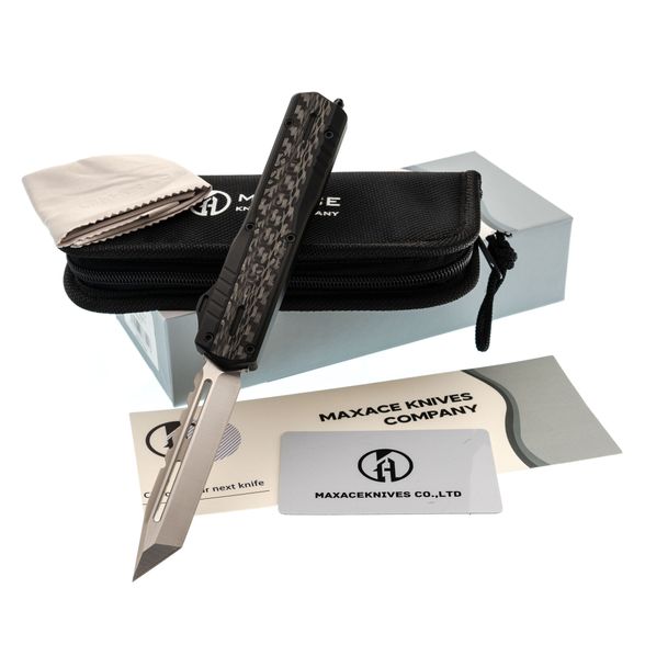 Maxace Medusa Tanto это новая вариация модели с автоматическим фронтальным выбросом клинка, которая совершенно точно удивит вас своими материалами.