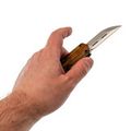 Прямые спуски делают своё дело — нож не только визуально эффектен, но и функционален в повседневном использовании. Он одинаково хорошо колет и режет.