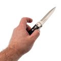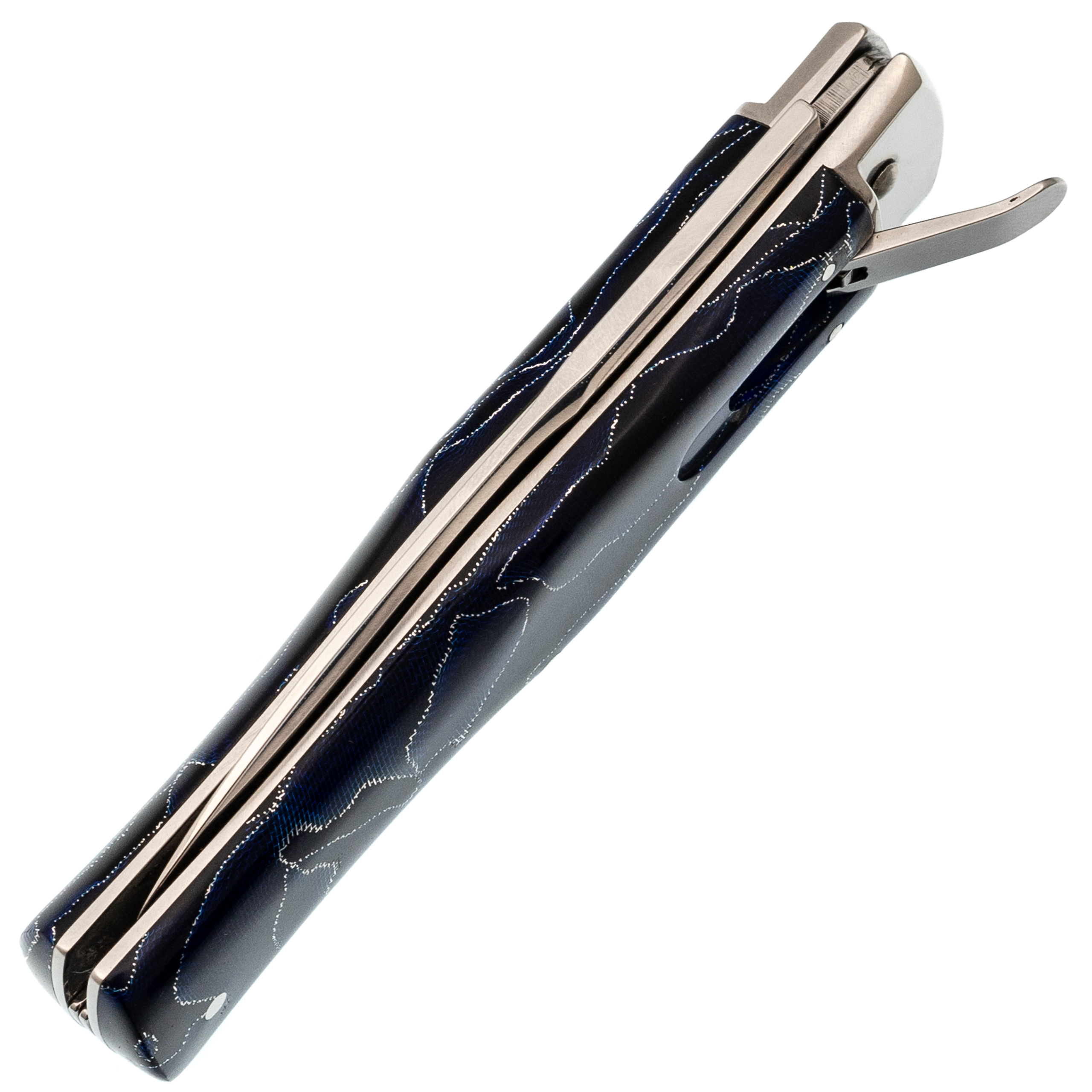Фирменный Lever-Lock - отдельная причина любить Mikov. Планка в состоянии покоя прилегает к рукояти и не цепляется, а чтобы открыть - её отгибают до упора и нажимают. Получается безопасно и просто: механизм срабатывает только по команде пользователя.