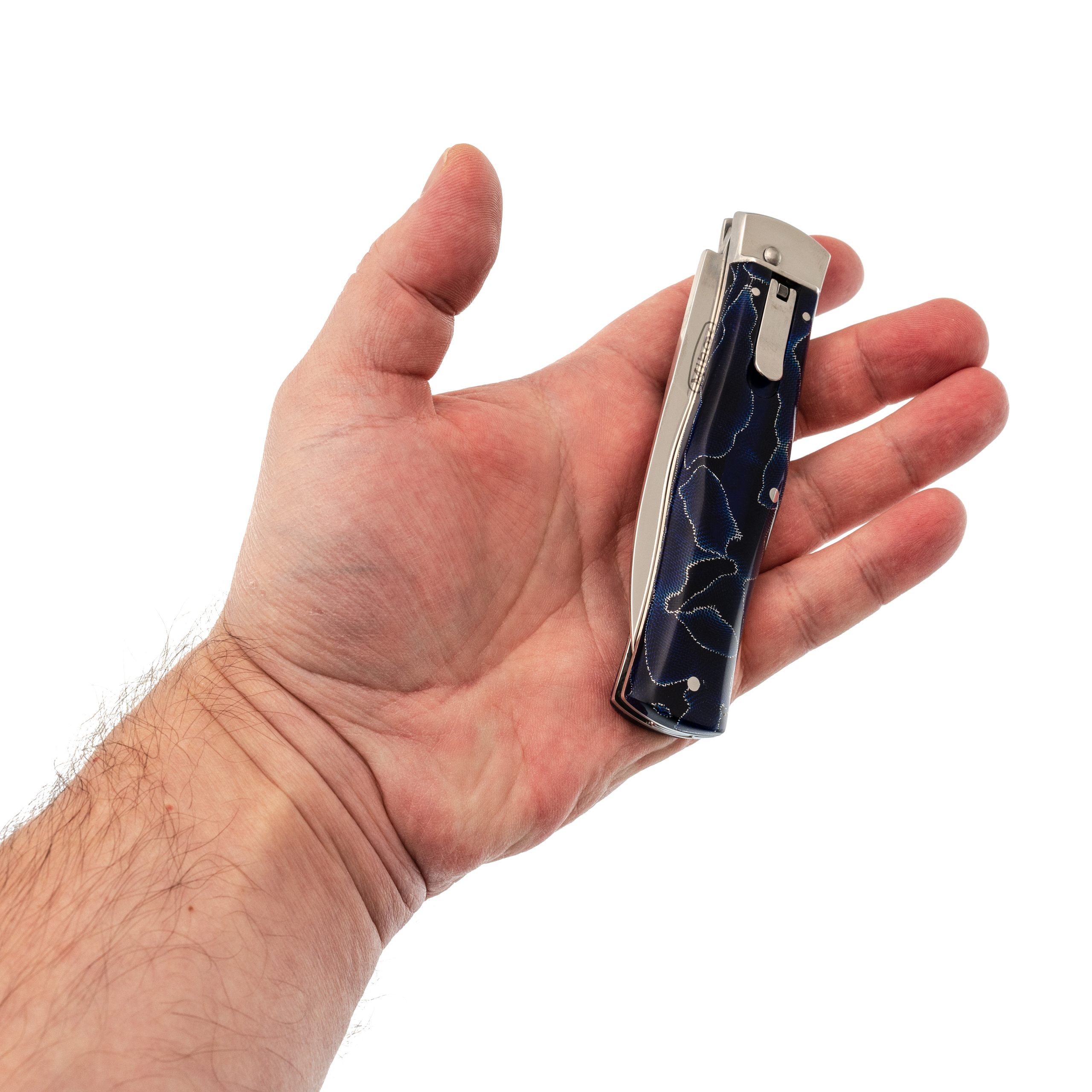 Predator - тот самый складной автомат Mikov, который знают по силуэту и механике. У него репутация модели с историей, но в этом исполнении она звучит по-новому за счёт материалов. И да: делается всё там же, в Чехии, где бренд работает уже больше 200 лет.