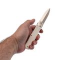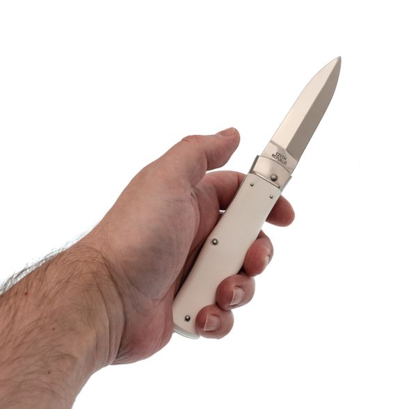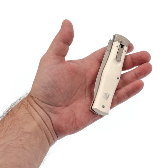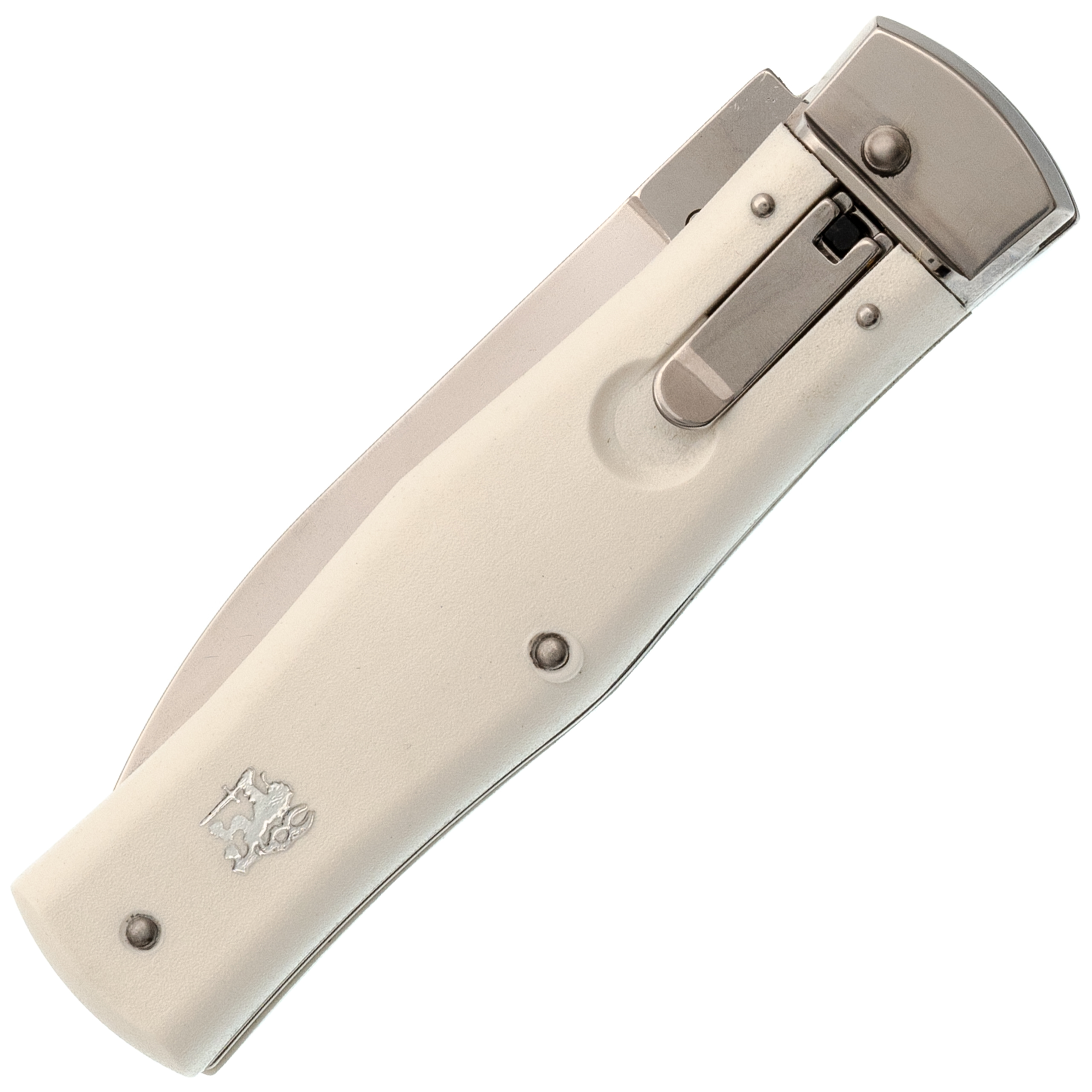 Ножи Mikov с автоматическим открыванием - это уже легенда, и Predator - одна из самых узнаваемых моделей. Его производят в Чехии, где о качестве металла знают толк. Этот экземпляр немного легче своих деревянных собратьев благодаря рукояти из белого пластика. Он такой же надёжный и неубиваемый, как и 30 лет назад, но выглядит свежо и современно. Отличный выбор для тех, кто ценит функциональность и не гонится за тёплым деревом.