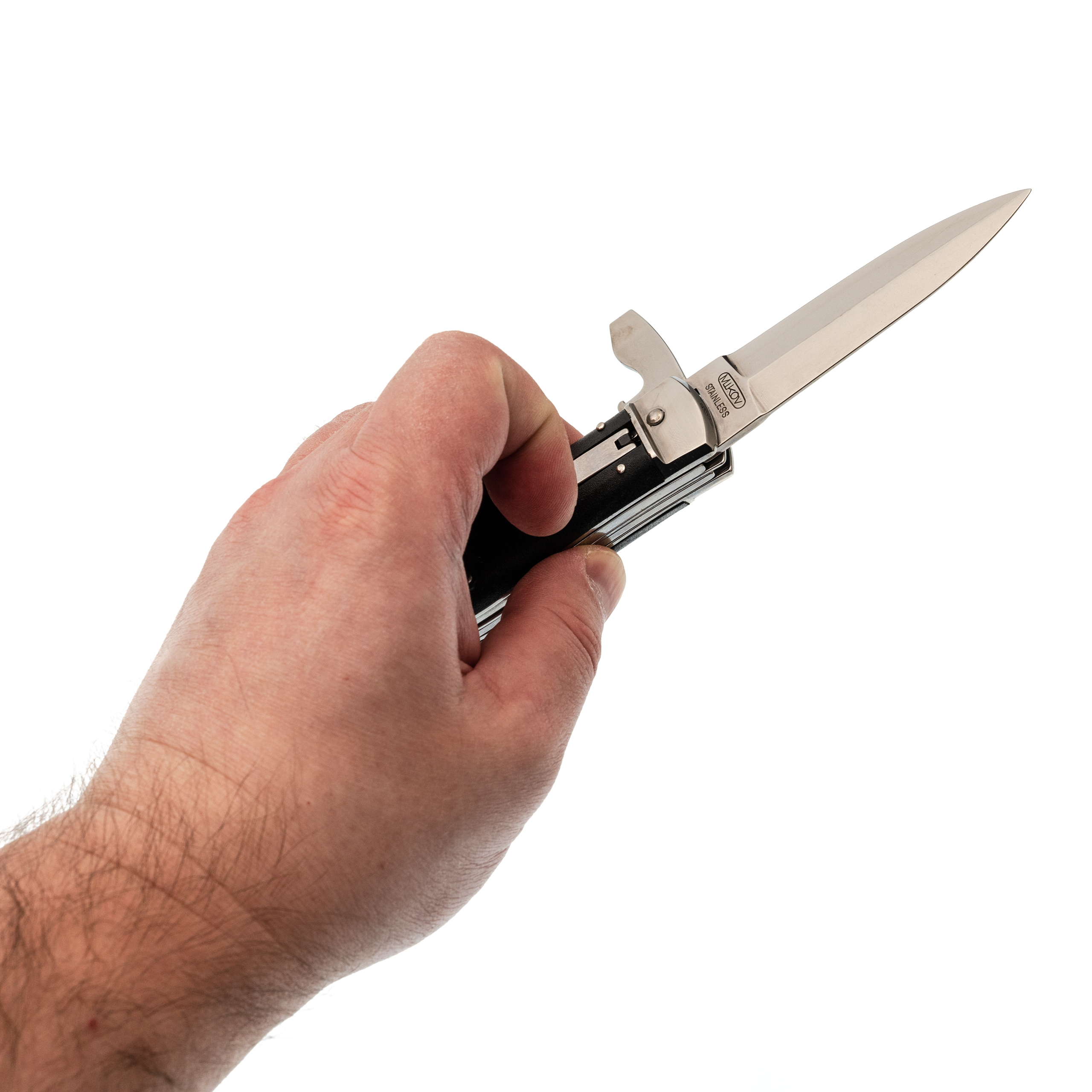- Пластик (рукоять). Лёгкий и практичный: не боится воды, не требует ухода, хорошо подходит для постоянного ношения.