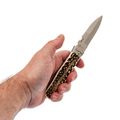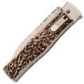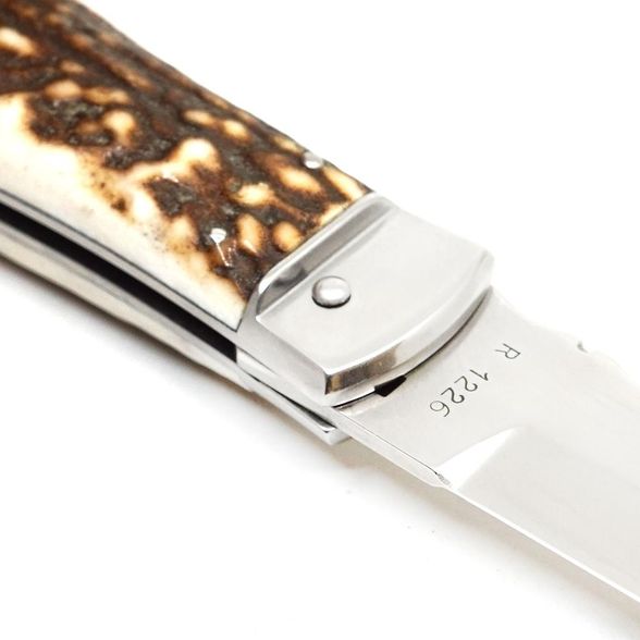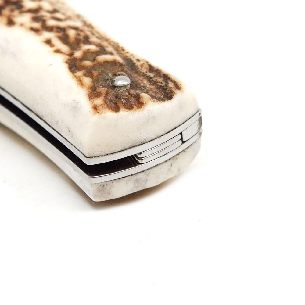 - Олений рог (рукоять) - натуральный материал с индивидуальным рисунком и приятным цепким ощущением. Каждая рукоять получается уникальной по оттенку и текстуре.