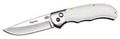 Форма рукояти повторяет естественный изгиб ладони. Глубокие подпальцевые выемки фиксируют хват, не давая пальцам соскользнуть на клинок при резке с усилием. Благодаря кнопочному замку, управление интуитивно понятно: кнопка расположена так, что большой палец ложится на неё естественно. В комплекте идет простой нейлоновый чехол, который позволяет носить нож на поясе или в рюкзаке, не переживая за сохранность карманов.