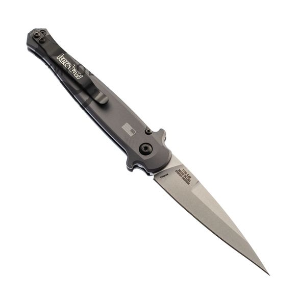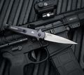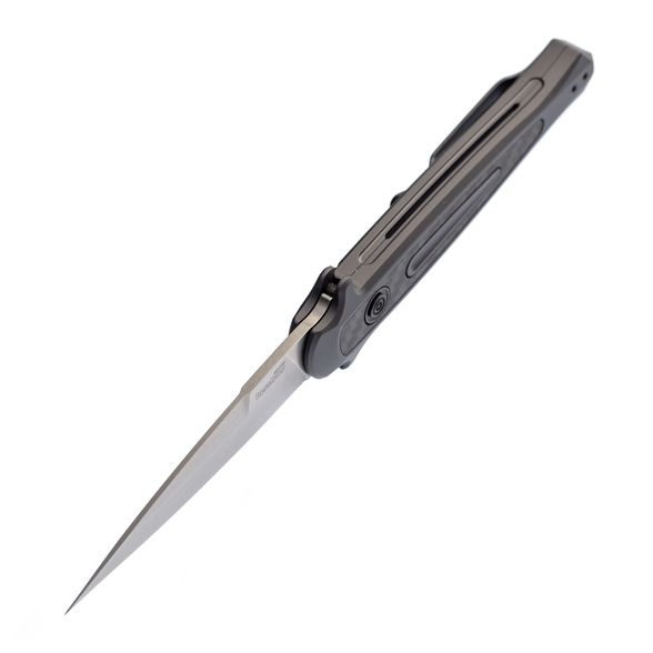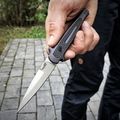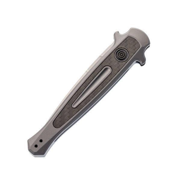 Рукоять изготовлена из алюминия, что делает ее легкой, прочной и устойчивой к воздействию различных погодных условий. Вставки из карбона придают рукояти не только технологичный вид, но и делают ее более изысканной. Автоматический механизм открытия позволяет в мгновение ока привести клинок в рабочее состояние, при этом легко и одной рукой.