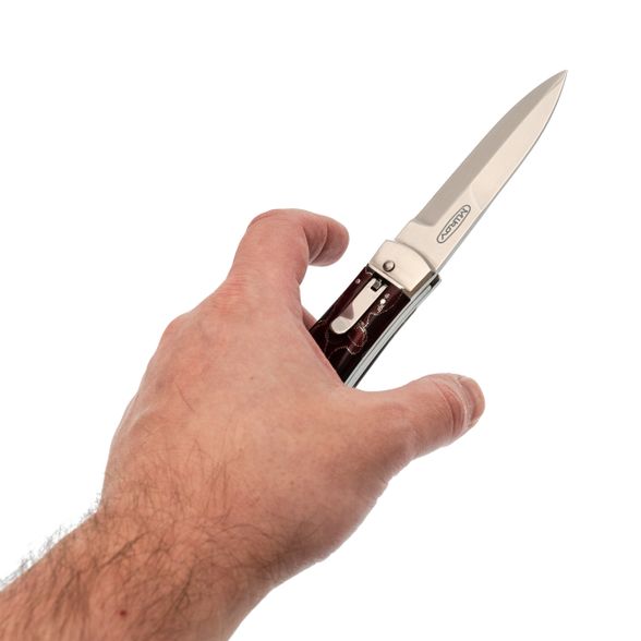 Есть ножи, которые хочется не только использовать, но и просто держать в руках, рассматривая детали. Этот Mikov Predator именно такой. История модели насчитывает три десятилетия, и всё это время она производится в Чехии, на фабрике с более чем двухсотлетними традициями. В этой версии инженеры пошли дальше и оснастили легендарный автомат премиальной сталью и уникальной рукоятью.