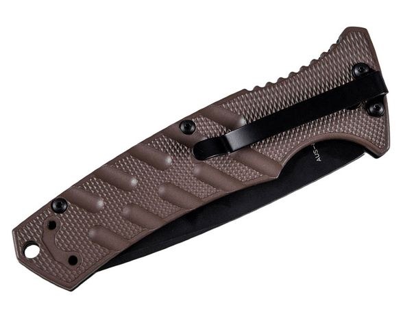 Его клинок изготовлен из стали AUS-8 - надежной нержавеющей стали, легко заточиваемой и обладающей высокой ударной вязкостью, что делает её хорошей для различных тяжелых видов работ. Профиль Spear-Point предназначен для проникающего действия, сохраняя при этом достаточную прочность кончика для многих тактических сценариев.