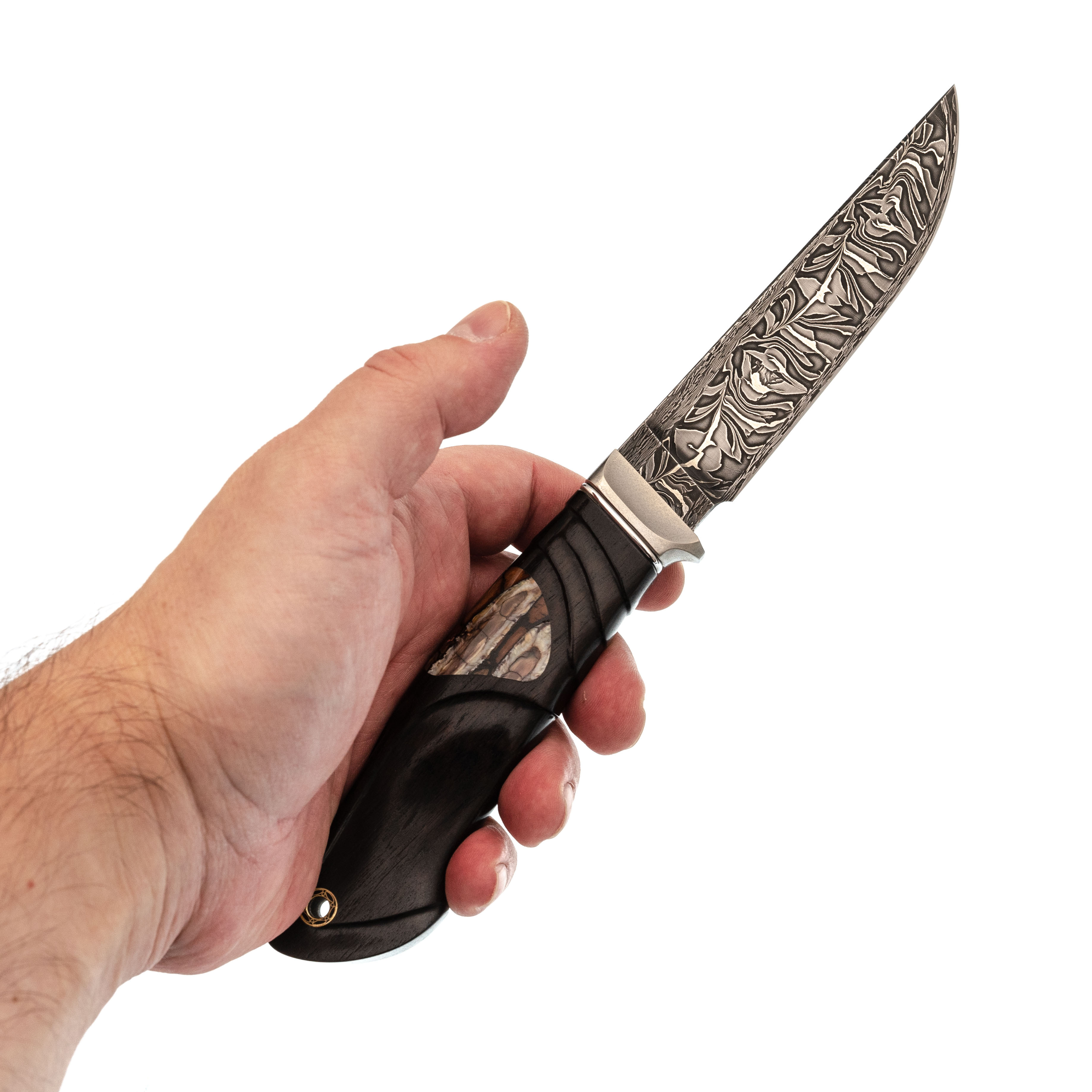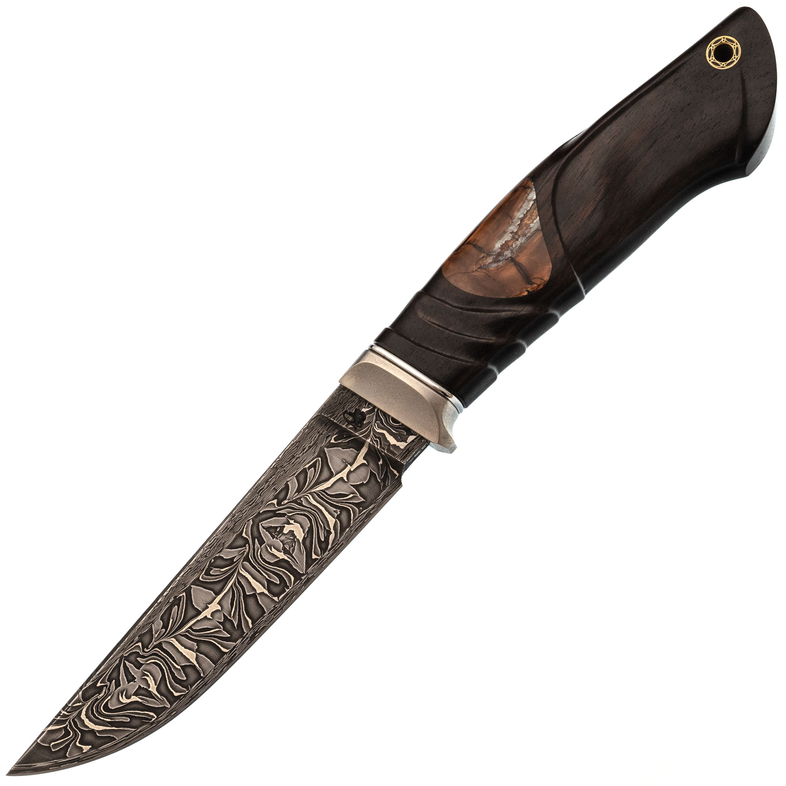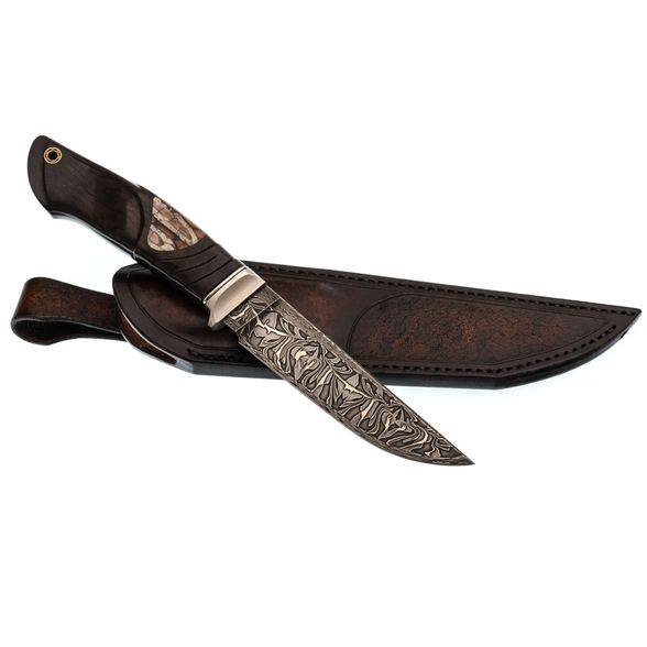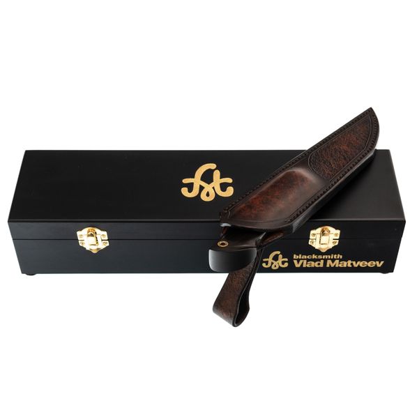 Авторский нож Перун, сталь мозаичный дамаск, подарочная шкатулка