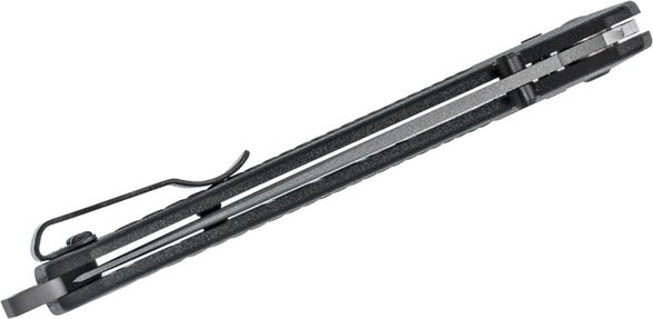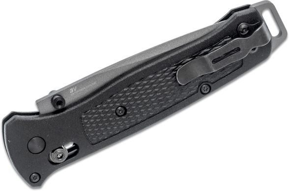 Компания Benchmade применила в конструкции своих складных ножей замок улучшенной конструкции с надежной фиксацией в открытом или закрытом состоянии. Механизм Axis-Lock обеспечивает высокую жесткость даже после неоднократных падений. Этот нож можно применять для выполнения разных задач и использовать каждый день. Для защиты от коррозии имеется дополнительное покрытие. Материал считается умеренно твердым, но стойким к ударным нагрузкам и сколам. Выдерживает длительный контакт с водой, но при этом не относится к нержавейке. Визуально отличается черным цветом. Невзирая на твердость металла вес ножа составляет 58 г. Это хороший показатель для носимого аксессуара.