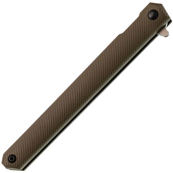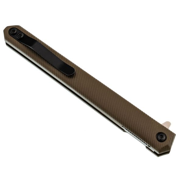 - G10 (рукоять) - стеклотекстолит, который любят за "цепкость" и стабильность. Он не боится влаги, не разбухает, не впитывает запахи и уверенно держится в руке - особенно когда ладонь мокрая или в перчатке.
