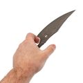 Клинок выполнен в форме Clip-point с ярко выраженной щучкой - спинка как бы срезана к острию, отчего кончик получается тонким и цепким. Им удобно подцеплять шкурку или вскрывать упаковки, но лучше не испытывать его на твёрдость гвоздей. Прямые спуски на полную ширину дают отличный рез: нож буквально врезается в продукт, а ширина полотна позволяет использовать его как маленький шеф-нож - шинковать капусту или резать мясо пластами.