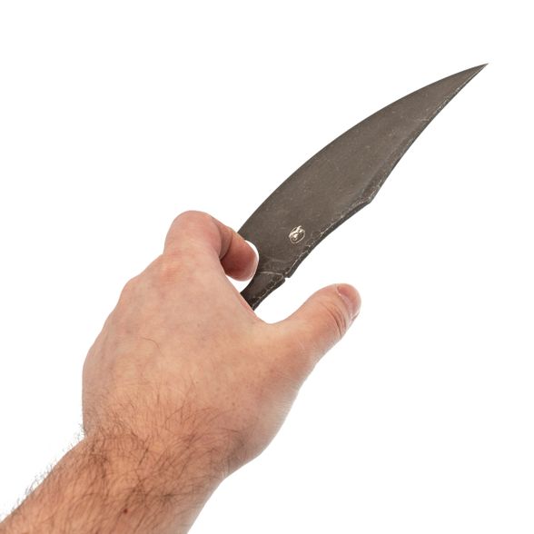 Тонкий профиль рукояти не натирает ладонь, но под силовые рубки он не рассчитан. Зато для нарезки продуктов и аккуратного строгания деревянных заготовок - идеально. Рисунок кости на рукояти выполняет двойную функцию: во‑первых, это авторский стиль, во‑вторых, дополнительный рельеф для надёжного удержания.