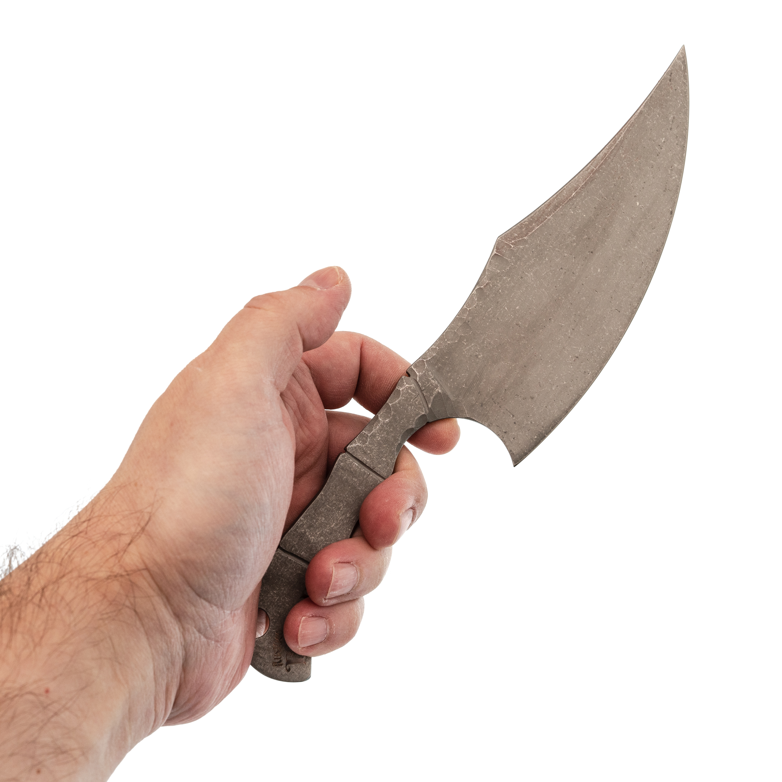 Рукоять удобно перехватывать, меняя хват в зависимости от задачи: хоть поварской для нарезки, хоть прямой для строгания. Сама рукоять тонкая, для силовых работ она не предназначена, но для кухонных дел и лёгкого строгания деревяшек - в самый раз. Фрезеровка под кости не только выглядит свежо, но и работает как насечка: мокрая или жирная рука не соскальзывает.