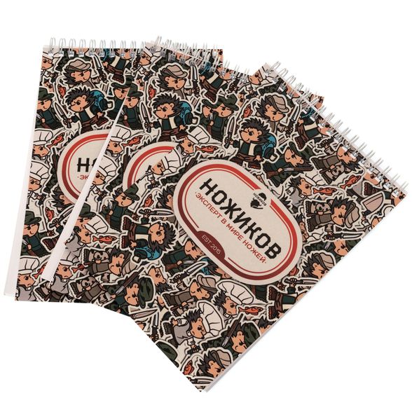 Блокнот "Ежиков" - идеальный спутник для всех, кто любит записывать важные мысли и рисовать свои идеи, а также для тех, кто не может устоять перед милыми зверюшками! С нашим Маскотом на обложке этот блокнот станет не только удобным инструментом для записей в формате A5, но и отличным мерчем для фанатов магазина "Ножиков".