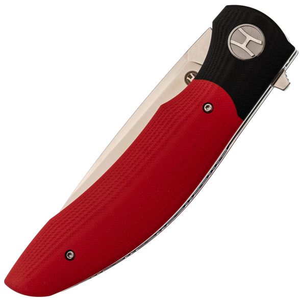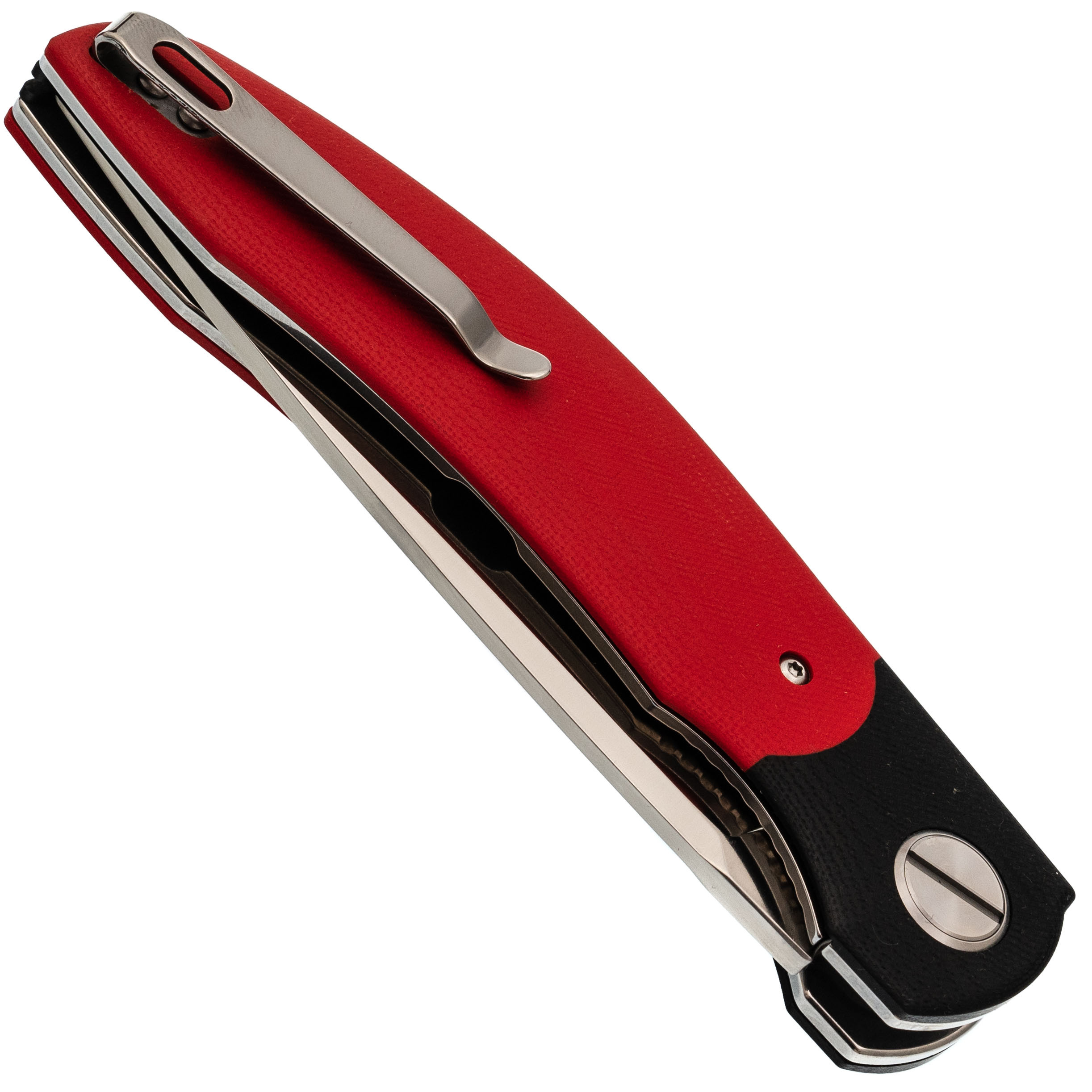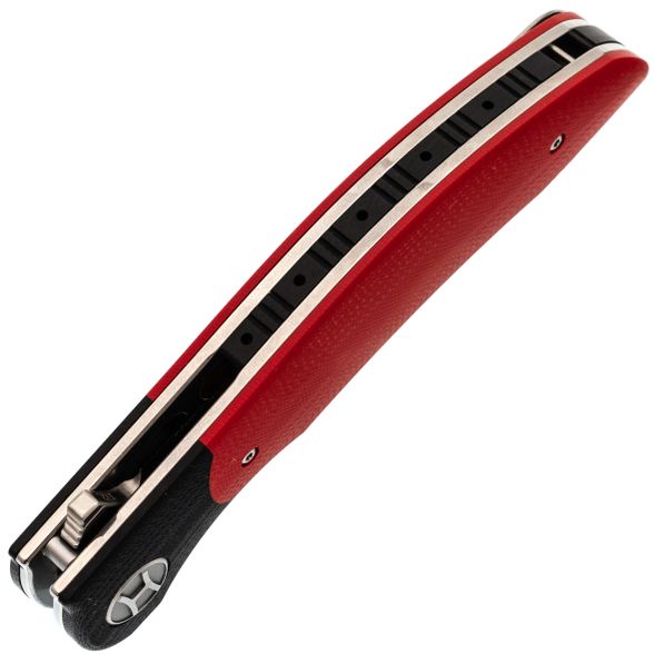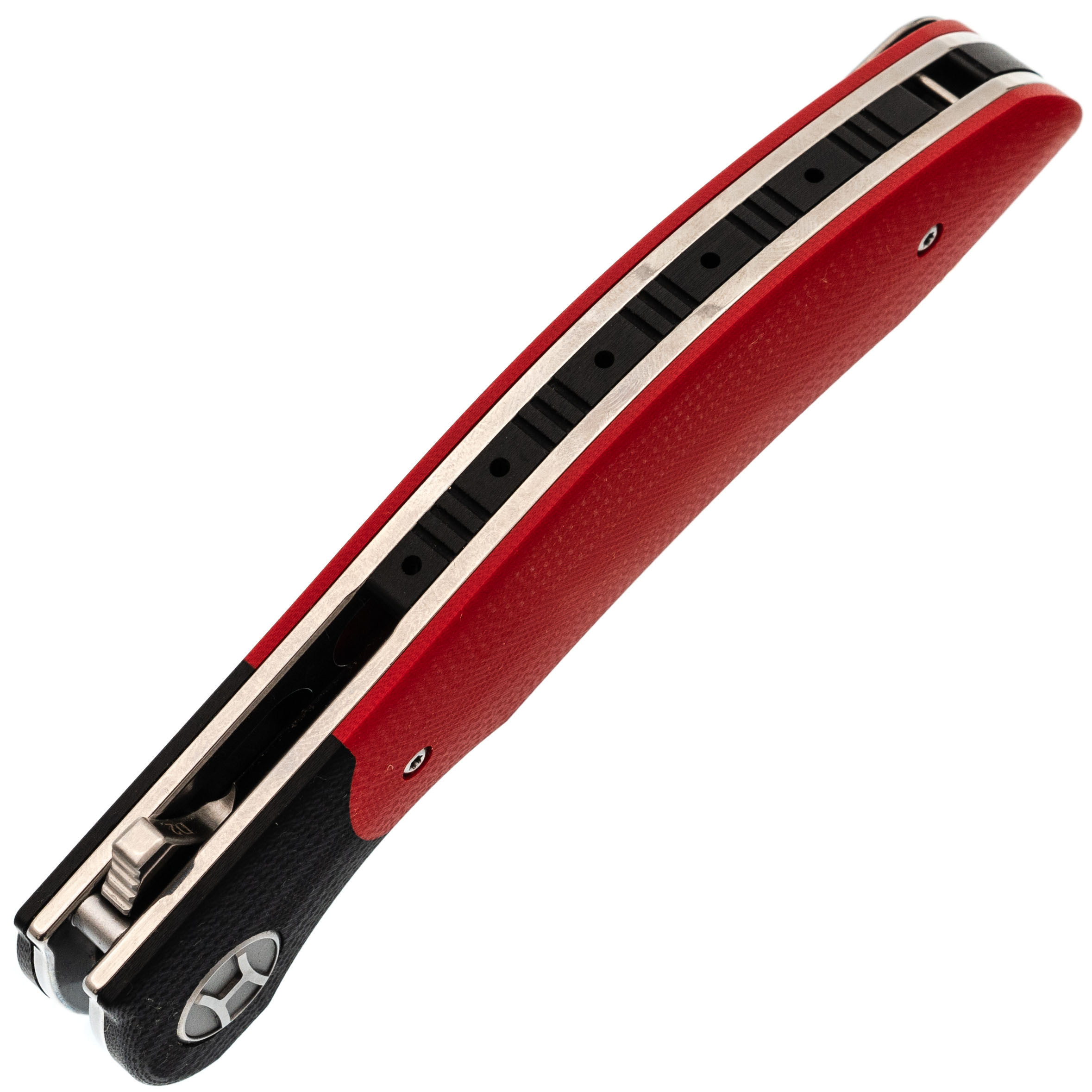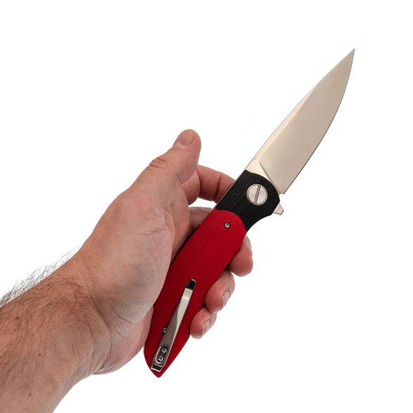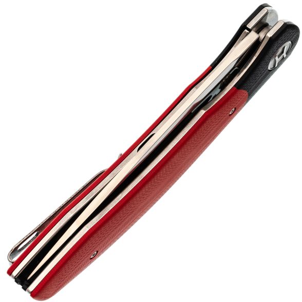 Эргономичный изгиб рукояти заполняет ладонь и распределяет нагрузку при длительной работе. Liner-Lock 2 мм фиксирует клинок жёстко и надёжно, с солидным запасом по толщине пластины. Клипса позволяет носить инструмент в кармане ежедневно. Накладки двухцветные с каждой стороны - сочетание чёрной и красной частей, что улучшает визуальную ориентацию и придаёт узнаваемый вид модели.