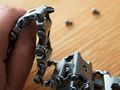 Звенья браслета на запястье соединены винтами, которые раскручиваются, поэтому их можно собрать в произвольном порядке. Для этого потребуется отвертка с плоским шлицем. Общее количество всех бит в составе этого изделия составляет 29. Весит мультитул 29 гр., но изготовлен из высокопрочной стали, которая не деформируется. Высокая твердость сплава и стойкость к коррозии указывают на длительный срок службы. Каждый адаптер этого изделия идеально подогнан друг к другу и не имеет люфтов. При необходимости весь аксессуар можно разобрать, добавить новые биты или по своему усмотрению.