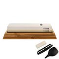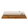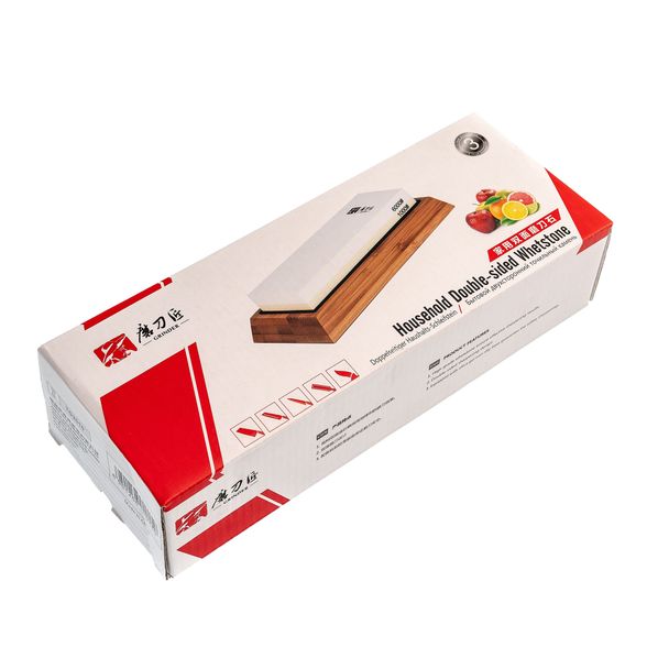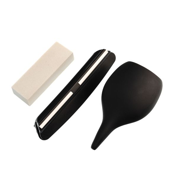 В комплекте идет деревянное противоскользящее основание, масленка для хоннирующей жидкости, роликовая направляющая, для поддержания оптимального угла заточки и камень доводочный.