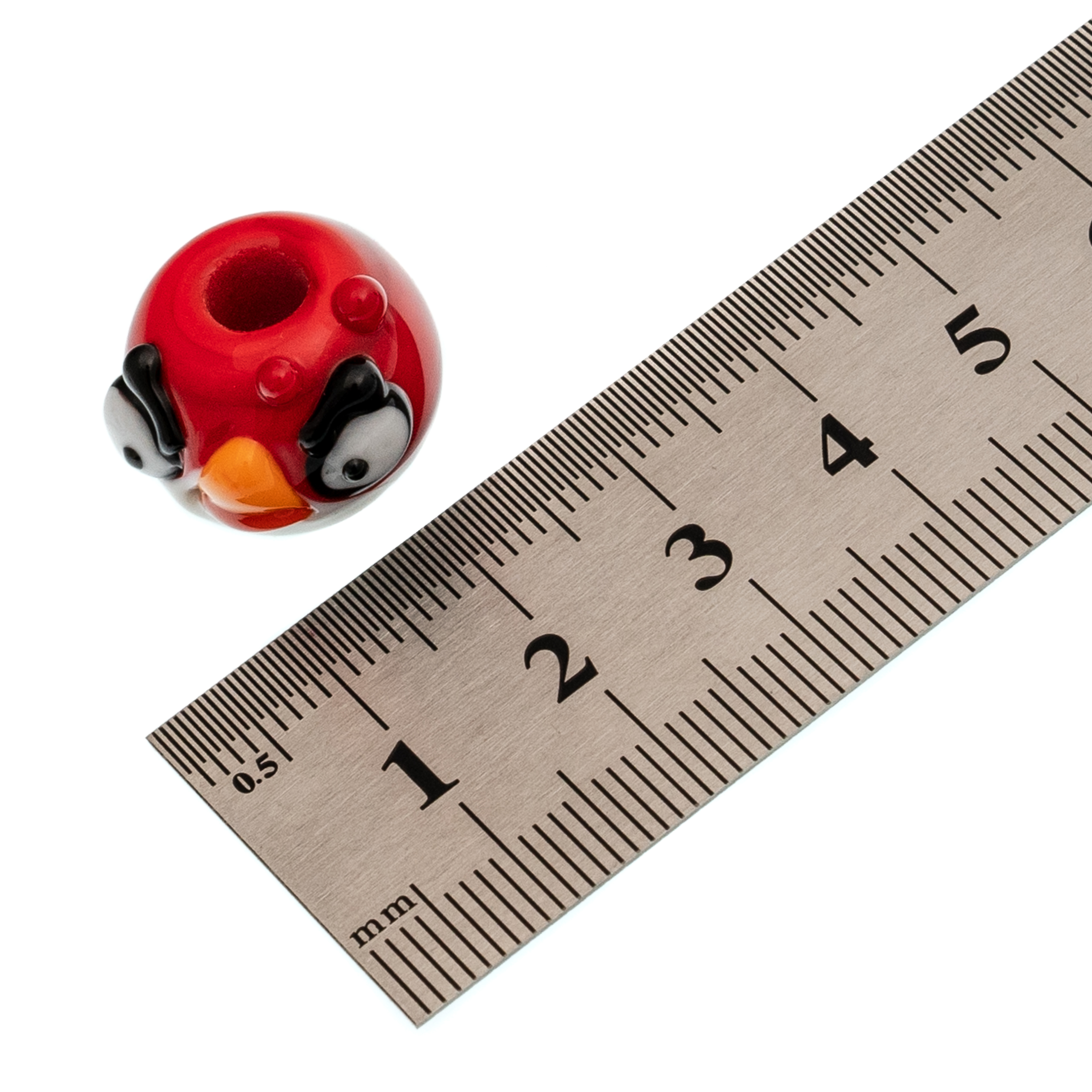 Бусина Angry bird, красная, стекло