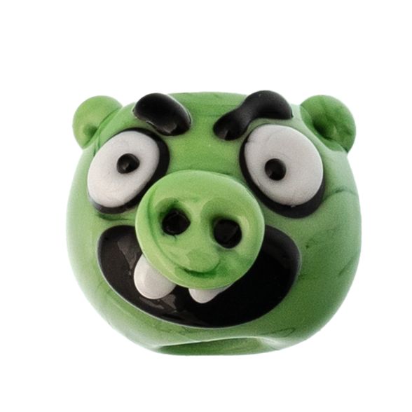 Бусина Angry bird, зеленая, стекло