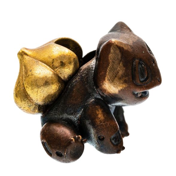 В тяжёлой бронзовой версии Бульбазавр от EXODUS.EDC превращается из милой фигурки в настоящий EDC- талисман. Суровая текстура металла подчеркивается латунной вставкой на спине — символической «луковицей» покемона, отсылающей к его природной мощи и эволюции.