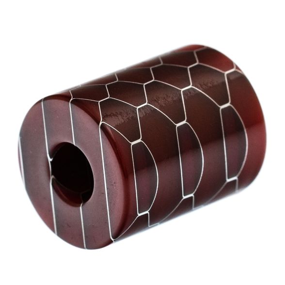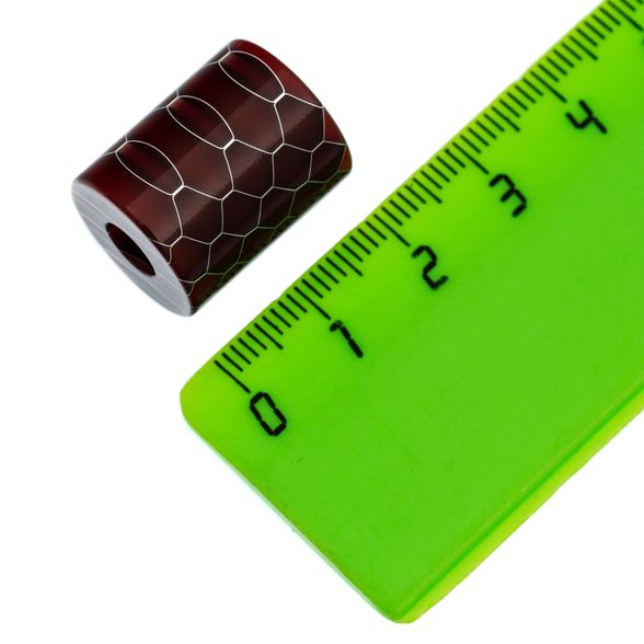 Эта бусина C-TEK от мастерской Lucky Crafts - маленькая, но очень заметная деталь. Глубокий бордовый цвет в сочетании с аккуратным сетчатым узором делает её необычной и стильной. Она легко выделяется и при этом выглядит аккуратно, добавляя аксессуару интересный визуальный штрих.