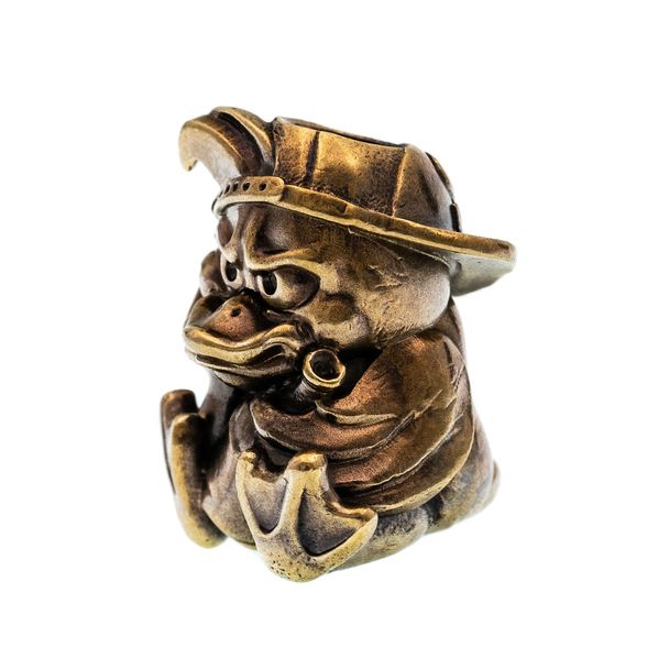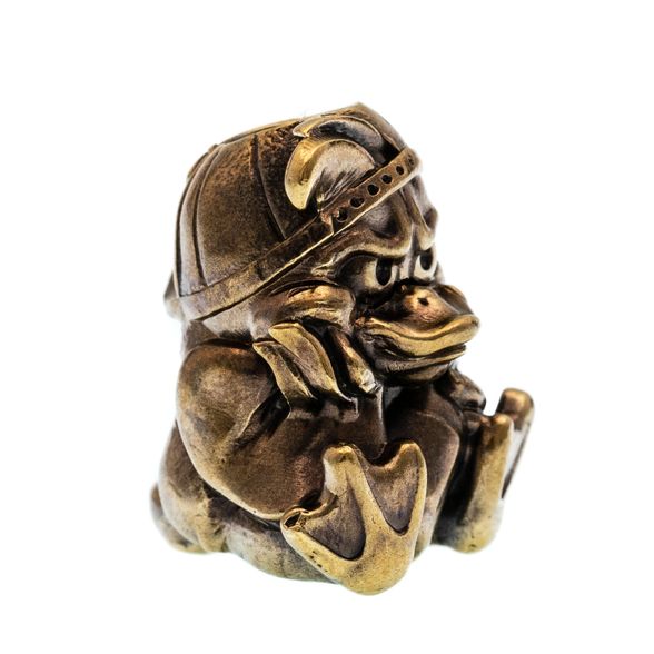Бусина "Дак" от мастерской Крымская Бронза - это кусочек мультяшной ностальгии в латунном исполнении. Персонаж в угрюмой позе подпер голову рукой, словно раздумывает о смысле жизни или просто наблюдает за вами. Добавьте немного юмора и индивидуальности любимым вещам.