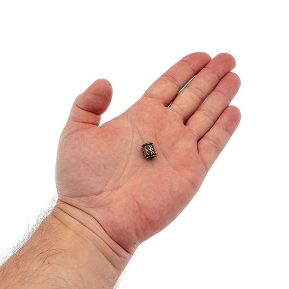 Длина 11 мм., диаметр около 9.5 мм., диаметр отверстия около 5.5 мм. Вес 3 грамма.