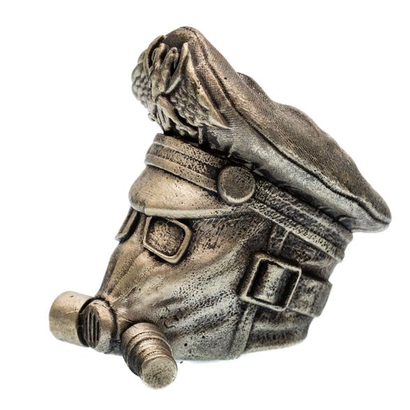 Изящная и мрачная, бусина «Комиссар Корпуса Смерти Крига» от EXODUS.EDC в исполнении из Нейзильбера - это миниатюрное произведение постапокалиптического искусства. Её образ - лицо в противогазе под лаконичной фуражкой - словно вырван из другого мира, где война не кончается, а долг выше всего. Нейзильбер придаёт бусине холодный, почти призрачный блеск, подчёркивая её отчуждённую эстетику.