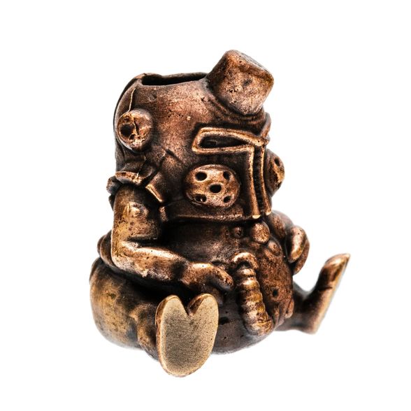 Он сидит, упершись на свои мерзкие лапки, словно только что нашёл гнилой трофей. Эта бусина — воплощение жизнерадостного разложения. Подвесь её на темляк ножа, рюкзака или браслет, чтобы добавить немного хаотичного шарма.