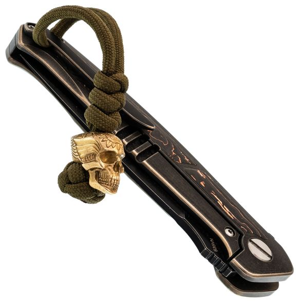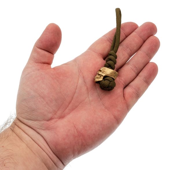 Откройте для себя загадочный мир с темлячной бусиной «Инопланетный Череп» от Ремесленной мастерской Сергея Чепуля. Этот аксессуар из латуни, выполненный с безупречной детализацией, изображает череп, явно не из нашего мира, и наполнен тонким мистическим смыслом. Его присутствие придаст вашим вещам – будь то нож, рюкзак, сумка или одежда – атмосферу неземной мудрости и таинственной силы. Благодаря комплектующему темляку из паракорда, этот загадочный символ можно сразу повесить где угодно, придав образу особый шарм.