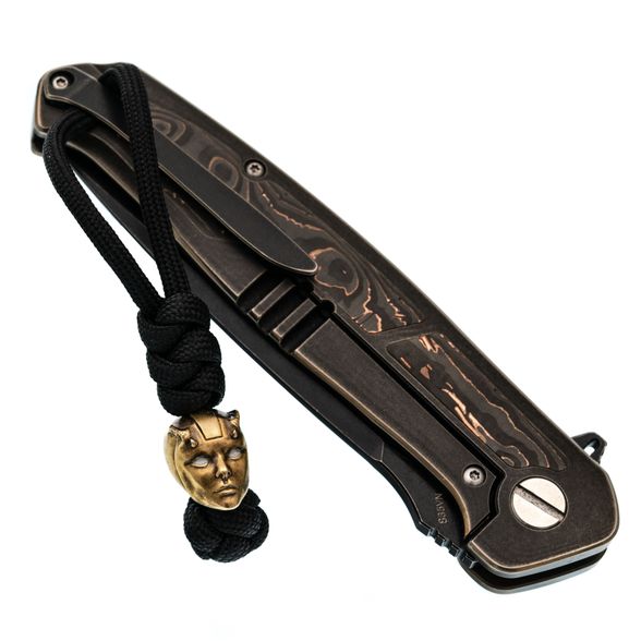 Бусина изготовлена из роскошной латуни, чей благородный блеск и прочность подчеркивают вечную ценность металлов. Комплект поставляется с темляком из паракорда, что позволяет с лёгкостью украсить ваш нож, рюкзак или любую другую часть гардероба, придавая ей особый, футуристический шарм.