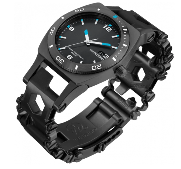 С гордостью представляем эксклюзив от именитого американского бренда – часы мультитул Leatherman Tread™ Tempo с браслетом. В защищенном стальным корпусом сапфировом циферблате безотказно функционирует швейцарский кварцевый часовой механизм. Часы Leatherman водонепроницаемы на глубине до 200 метров и не подвержены ржавлению. Особое внимание заслуживает ремешок часов, состоящий из более чем 30 функциональных отверток и мини-инструментов. Купить браслет Leatherman (Лазерман) с часами окажется идеальным решением в качестве подарка взрослому мужчине, в особенностях поклоннику выживания, туризма и рыбалки.