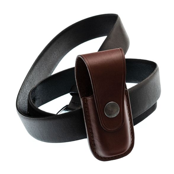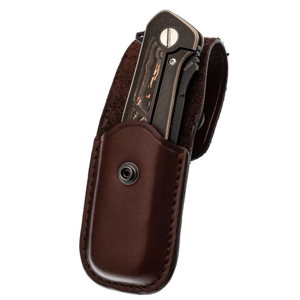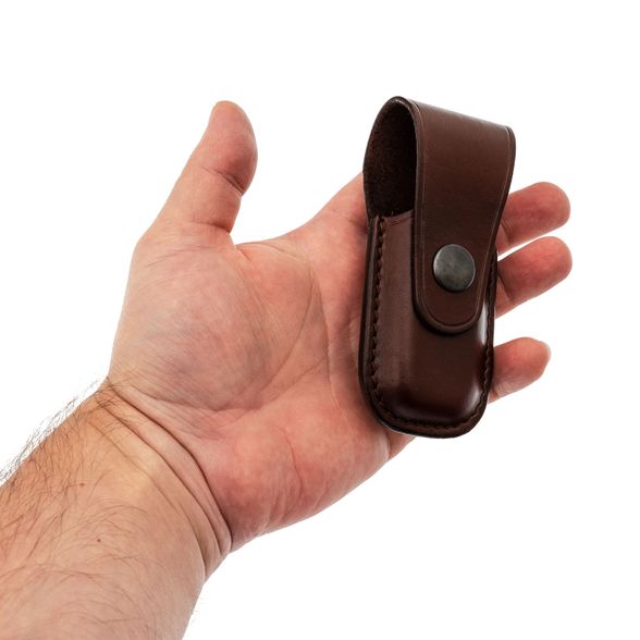 Чехол для складного ножа на пояс, 100 мм, кнопка, коричневый