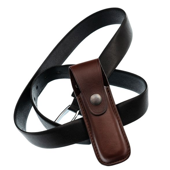 Чехол для складного ножа на пояс, 140 мм, кнопка, коричневый