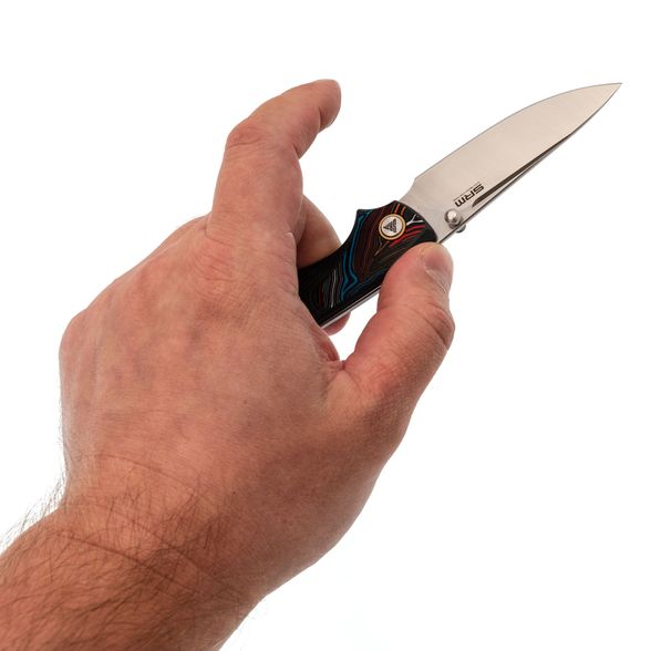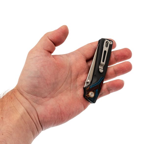 Слоёный G10 - декоративные вставки не только добавляют эстетическую ценность, но и повышают прочность ножа, делая его более надёжным в работе.