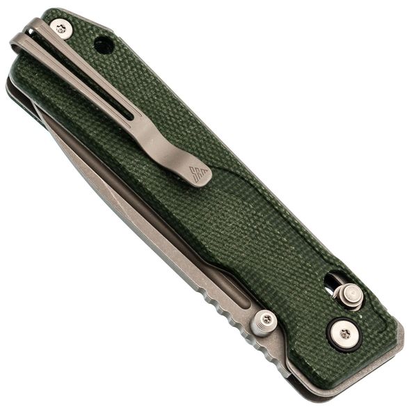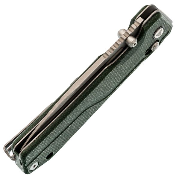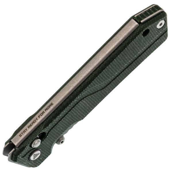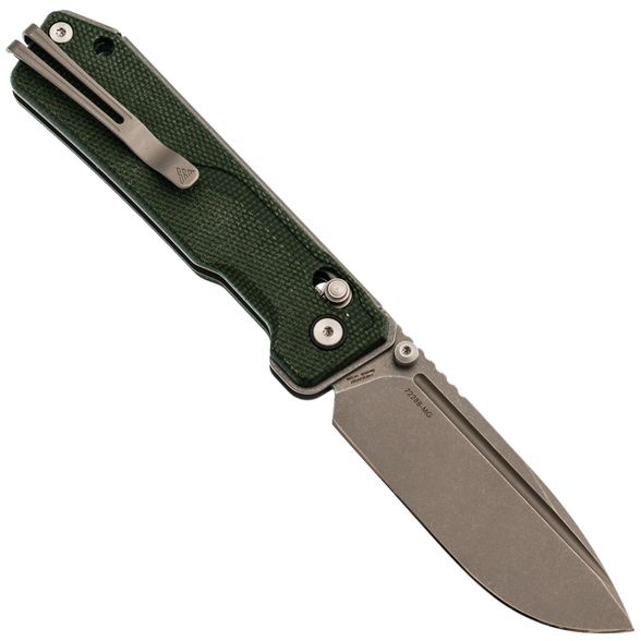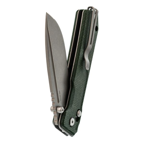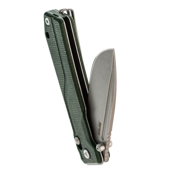 Рукоять SRM Rubik имеет уникальное и прочное исполнение. Она изготовлена из цельного стального лайнера, который согнут таким образом, чтобы обеспечить комфортный и надежный хват. На лайнер крепятся накладки из микарты - материала, известного своей прочностью и устойчивостью к воздействию окружающей среды. Микарта имеет приятную бархатистую текстуру, что улучшает тактильные ощущения при использовании ножа. Рукоять оснащена фирменной Ambi-Clip застежкой, которую можно легко переставить на другую сторону, не разбирая нож. Замок Ambi-Lock позволяет удобно открывать и закрывать нож как правой, так и левой рукой, делая его полностью универсальным для правшей и левшей.