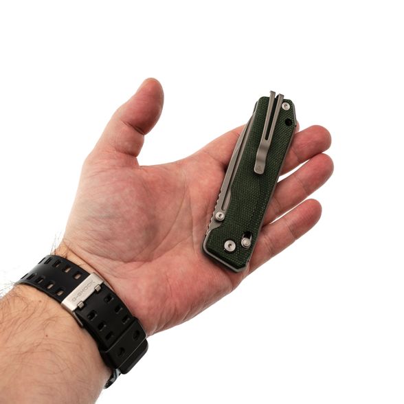 Клинок выполнен из высококачественной шведской стали Sandvik 14C28N, которой свойственна высокая стойкость к коррозии и способностью сохранять остроту режущей кромки. Такая сталь легко поддается заточке, что позволяет поддерживать нож в идеальном рабочем состоянии. Геометрия клинка универсальна: он имеет профиль Drop-Point и высокие прямые спуски, благодаря чему подходит для различных задач, от повседневных до более сложных работ. Финиш клинка Stonewash превосходно скрывает царапины от использования, что особенно важно для рабочих ножей, используемых в различных условиях.